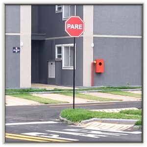 PLACA PARE: Tem oito lados para garantir a identificação imediata, à noite, ou em condições de baixa visibilidade, como neblina, evitando confusão com as outras placas. É única para reconhecer a obrigatoriedade de parar.