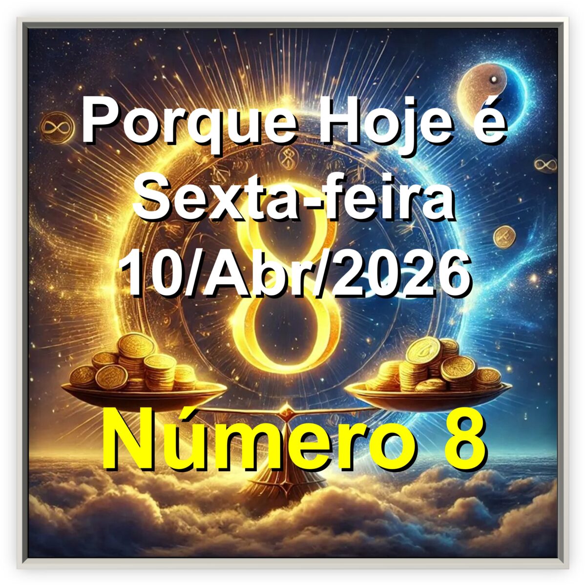O número oito (8) representa a eternidade, a continuidade e a união entre o mundo físico e espiritual.