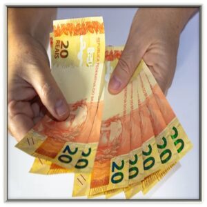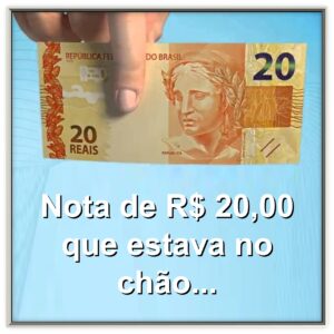 — Minha Senhora! São os meus R$20,00! A senhora não pode me ignorar como se eu não tivesse dito uma palavra… Os meus R$20,00 você juntou com outras notas de R$20,00 guardou em seu bolso!