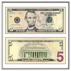 NOTA US$ 5,00 – Nota do 16º Presidente Abraham Lincoln. Uma nota comum.