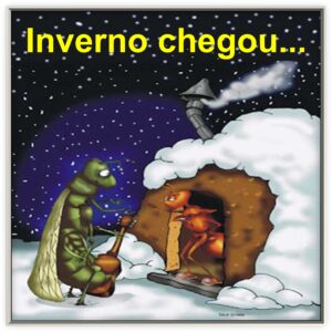 Enquanto isso, a cigarra só queria saber de cantar nas rodas de amigos e nos bares da cidade. Não desperdiçou nem um minuto sequer…