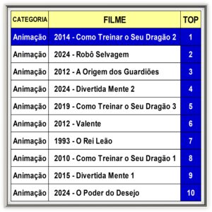 Sou cinéfilo e para o Jorge, de todos os Filmes da Categoria Animação, Como Treinar o Seu Dragão 2 é o melhor de todos por causa da emoção dos 120 primeiros segundos do vídeo que está no final do item REFLEXÃO DA HISTÓRIA.