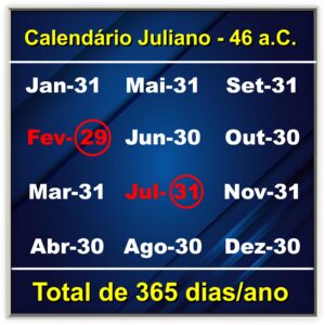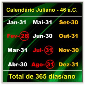 Até o ano 47 a.C. o tempo era contado pelo Calendário Romano, que tinha 355 dias, entretanto, não completava o Ciclo Solar de 365 dias.